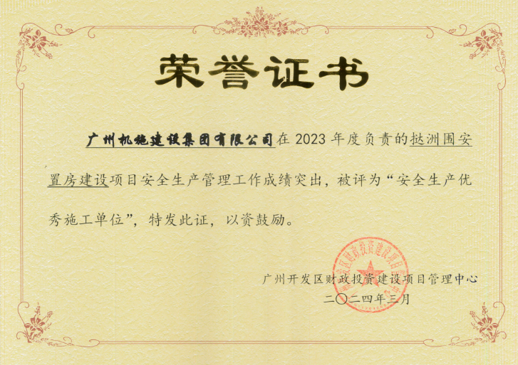 3月27日,廣州開發(fā)區(qū)財政投資建設項目管理中心召開2024年第一季度建設工程安全生產工作會議,由我司承建的黃埔區(qū)開放大道北二期建設工程和撻洲圍安置房建設項目安全生產管理工作成績備受肯定,我司籍此榮獲2023年度"安全生產優(yōu)秀施工單位"稱號。