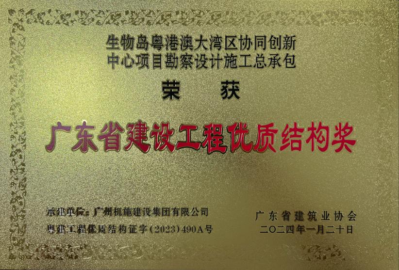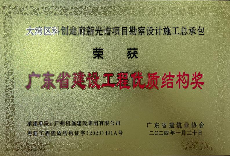 喜報!機施集團兩大項目榮獲廣東省建設工程優(yōu)質結構獎!